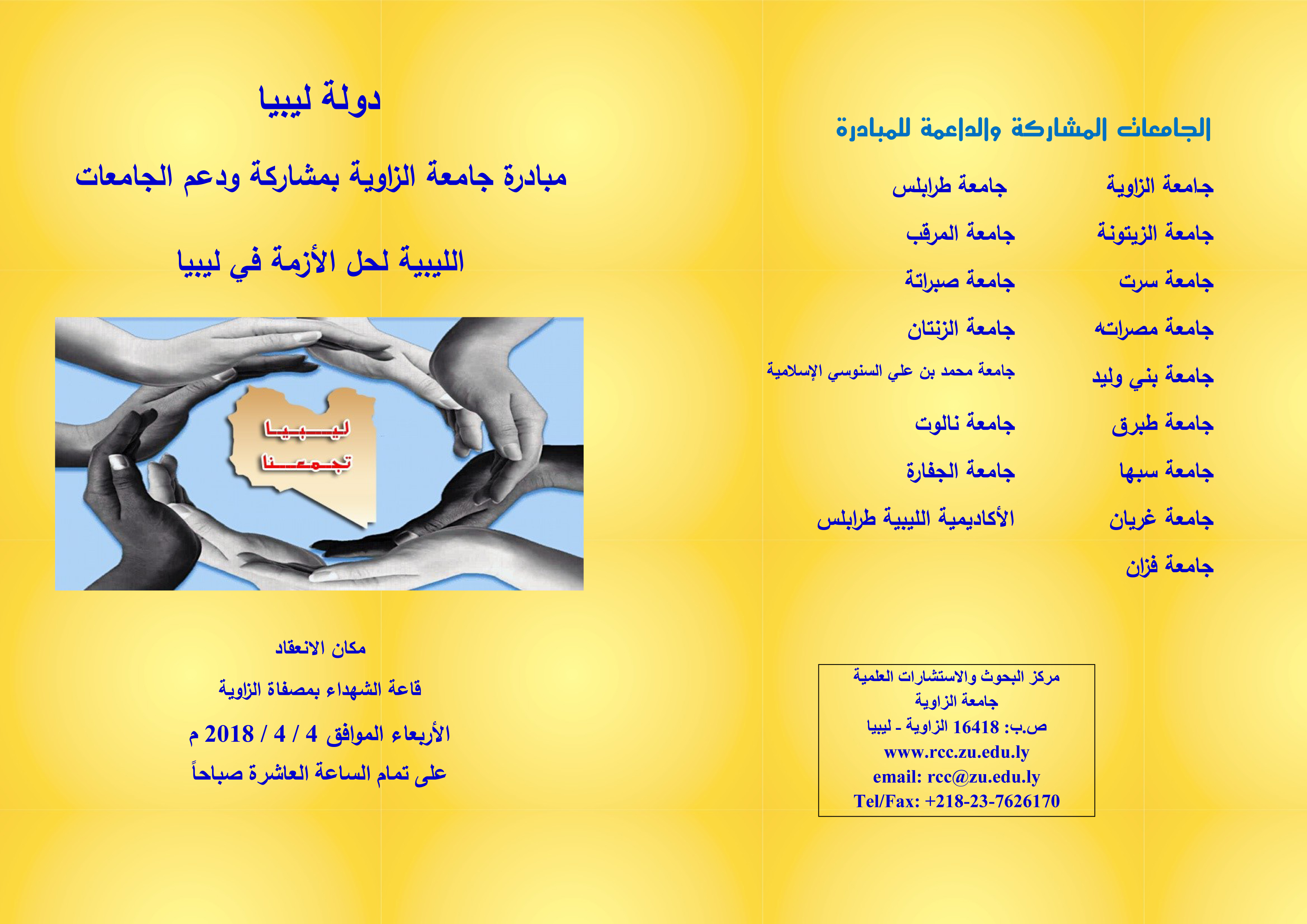 مبادرة جامعة الزاوية بمشاركة ودعم الجامعات الليبية لحل الازمة في ليبيا