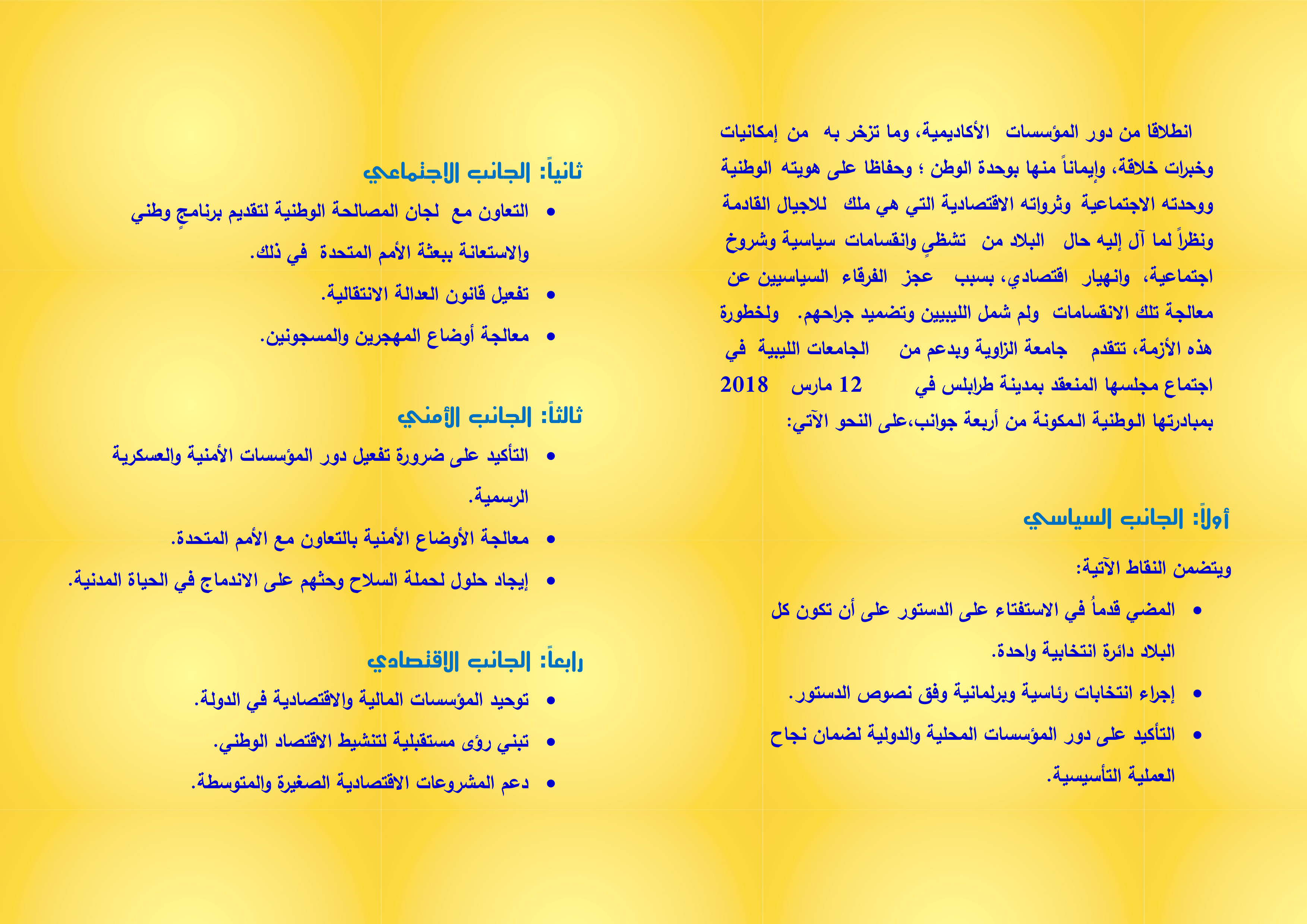 لحل الازمة في ليبيا بدعم ومشاركة الجامعات الليبية .